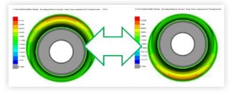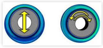 নিম্নলিখিত চিত্রটি রেডিয়াল লোডের অধীনে একটি নির্দিষ্ট সাসপেনশন বুশিংয়ের সীমাবদ্ধ উপাদান মডেল এবং গণনার ফলাফলের কনট্যুর প্লট দেখায়।